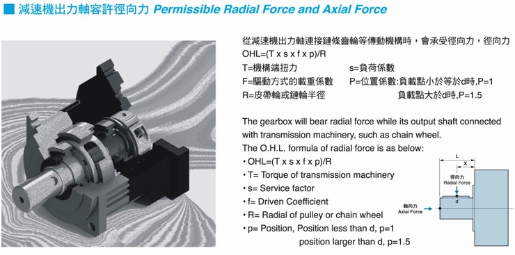 ![]() 減速機(jī)出力軸容許徑向力: ![]()